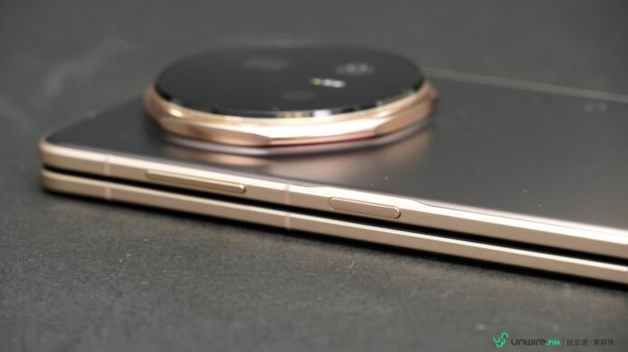 ▲另外,在機身摺疊時,內建指紋辨識器的開關鍵及音量鍵均設於機身右側。