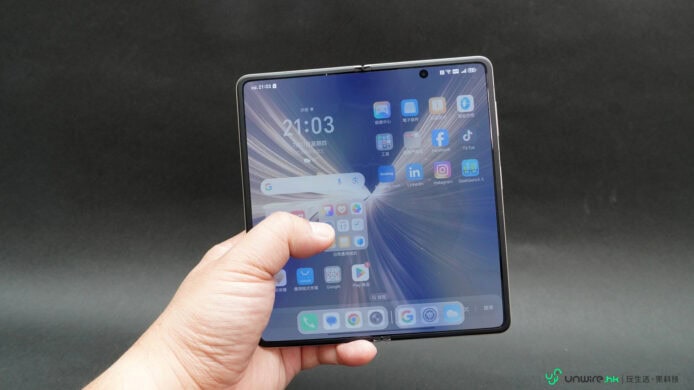 ▲當然,展開機身時,就可以見到 Magic V5 確實做到十分薄身。