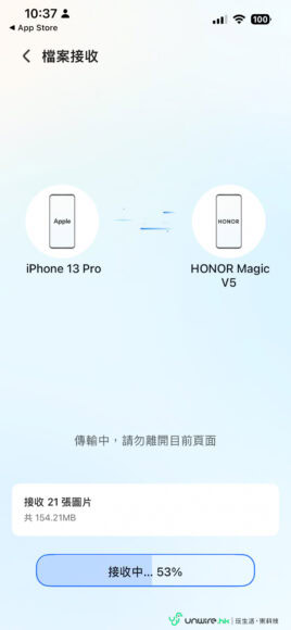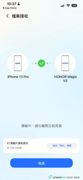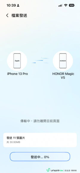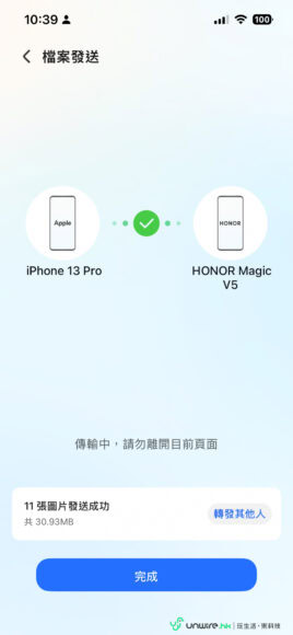 ▲之後就會傳送檔案到 Magic V5,然後 Honor 用家在 Honor Share 文件夾內就可以看到相關檔案。