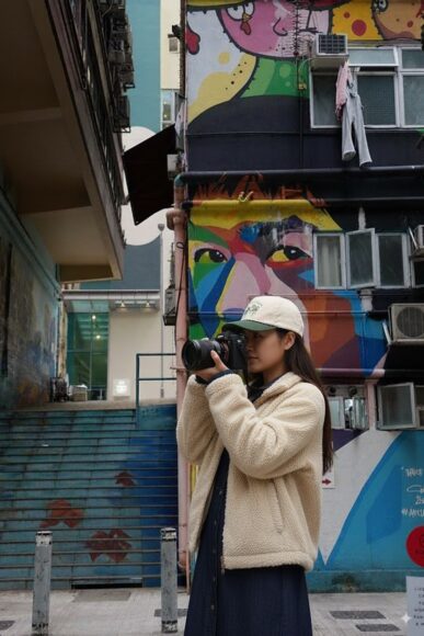 這次生成的結果非常準確,AI 將女性角色重新安置至街頭塗鴉牆前,不只讓她戴上了指定的棒球帽,也正確地將相機放置於她手中,呈現她正專注拍攝的姿勢。原來照片中背景的行人也被成功移除。你可根據實際需要而增減提示詞。