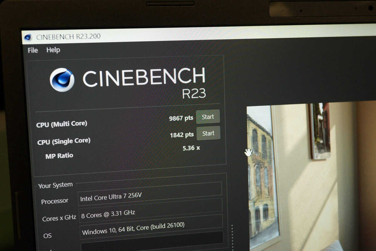 Acer Aspire 14 AI 配備 Intel Core Ultra 7 處理器,配合內建 Intel Arc 圖像晶片,含 AI 加速器顯示晶片與 NPU,官方表示支援高達 48 TOPS 的 AI 運算。我嘗試同時開啟瀏覽器(含多個分頁)、AI 圖像生成工具、影片編輯軟件與 Zoom 會議,整體操作流暢,沒有出現明顯延遲或過熱情況。在 PC Mark 10 測試中本機得分為 6656 分、Cinebench R23 評分為單核心 1842 分以及多核心 9867 分,證明在重度工作應用場景中,電腦都能給予強大支援。