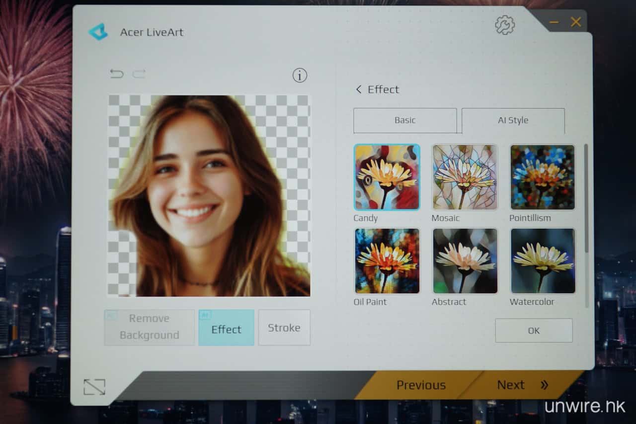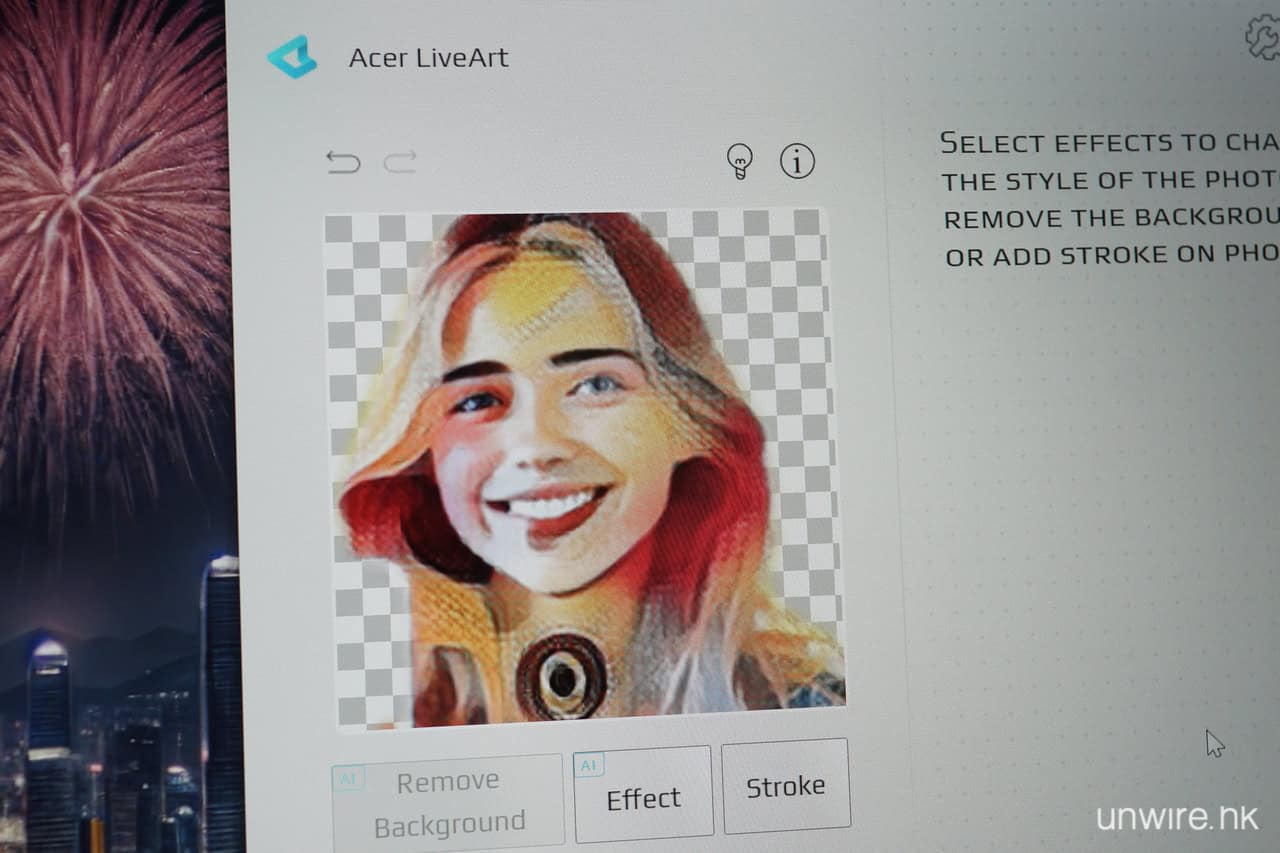 ▲電腦內置 Acer LiveArt 應用程式,可為你的相片去背、以 AI 加入各種特效