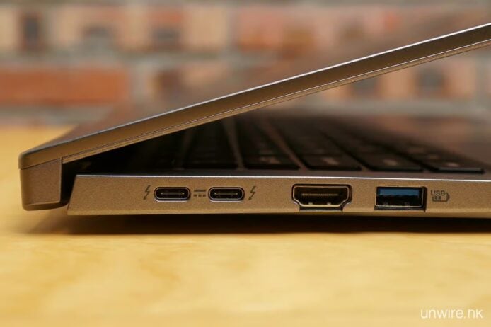 外接方面,兩組 Thunderbolt 4 埠可連接 4K 螢幕與高速外置 SSD,測試中同時輸出至 8K 顯示器與傳輸 10GB 影片檔案,速度穩定不掉速;Wi-Fi 6E 與藍牙 5.3(支援 LE Audio)亦表現穩定,延遲極低,對應日常與專業工作場景皆非常可靠。