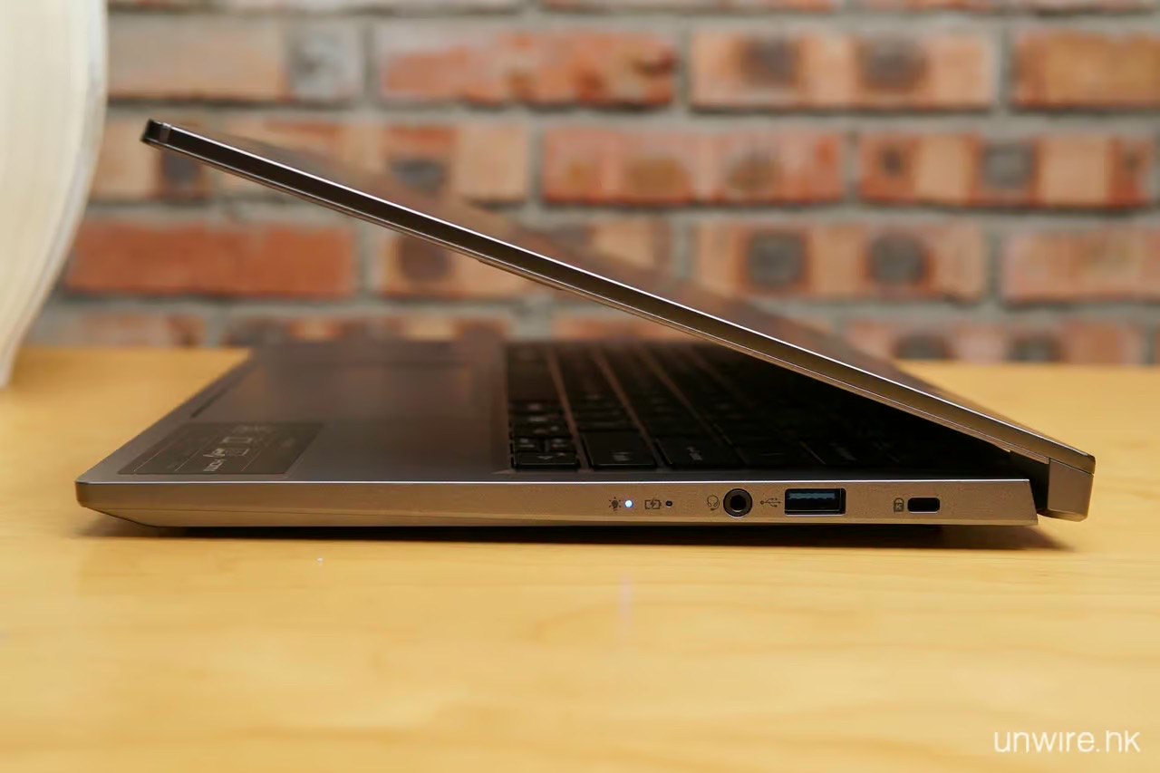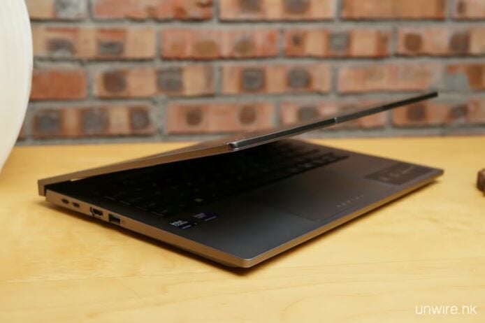 Aspire 14 AI 採用全鋁合金機身,重量僅約 1.4kg,厚度僅 16.9mm,配合低調的鋼灰色外觀,在移動間仍保有專業質感。180° 鉸位可將螢幕完全攤平,單手開蓋操作順滑。筆電實際放入背包並每日攜帶通勤測試,幾乎無壓力,重量與體積控制令人滿意。