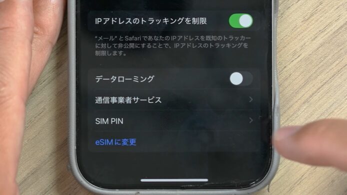 ▲如果是將現有實體 SIM 卡轉換成 eSIM 的話,就點擊進入「流動數據」畫面中電訊商的項目,再按「轉換成 eSIM」