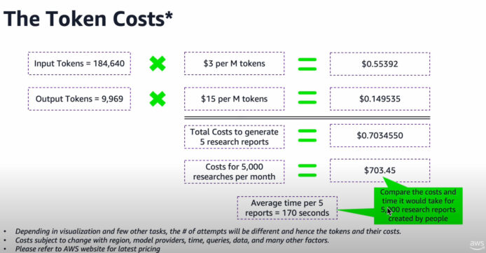 成本效益方面同樣驚人。以示範例子計算,利用 Claude 3.7 Sonnet 生產五份詳細報告,總成本只需約 0.7 美元。如果每月要產生 5,000 份報告,總開支亦僅約 700 美元,比傳統人手分析低得多。而且,過去需要數天時間的分析流程,如今數分鐘就能完成,大大提升企業反應速度。