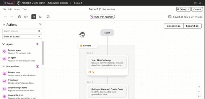 - Quick Automate:針對更複雜、多部門、跨系統的大型流程(如客戶入職、採購、合規審批),技術團隊可用自然語言或文件上傳描述,AI 會自動轉換成多代理商協作流程,支援網站自動操作、數據提取及下游系統整合,並設有監控、審批、合規審計等企業級功能。