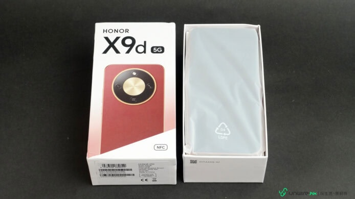▲一打開包裝盒就見到 Honor X9d 真身放在白色的膠袋內。