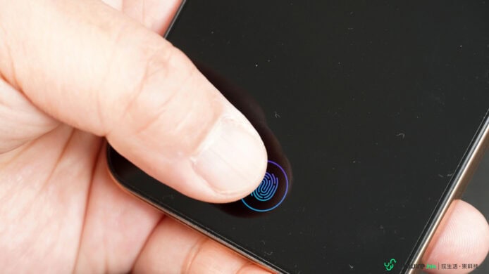 ▲雖是中階手機,但依然支援熒幕下指紋解鎖技術。