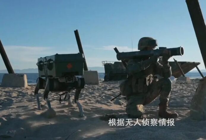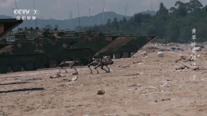 中國陸軍第72集團軍「黃草嶺英雄連」近期舉行實戰化搶灘登陸演練,首次在兩棲作戰場景大規模運用無人機與仿生四足機械狗「機器狼」擔當先鋒,配合有人部隊協同作戰。演習涵蓋離艦泛水、海上戰術實彈射擊及搶灘登陸,展示新型兩棲部隊空地無人裝備整合使用,強化綜合戰力。