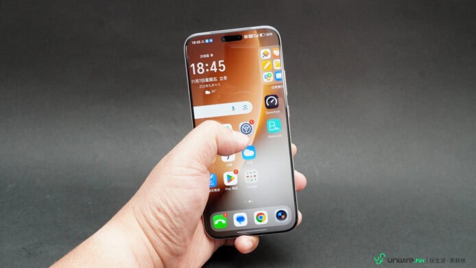 ▲機背整體風格與上代也沒有太大不同,機背依然採用磨砂玻璃物料並加入波浪紋,但紋理似乎比上代更加隱藏低調。而筆者借測的是旭日金砂色版本,看起來依然十分漂亮。