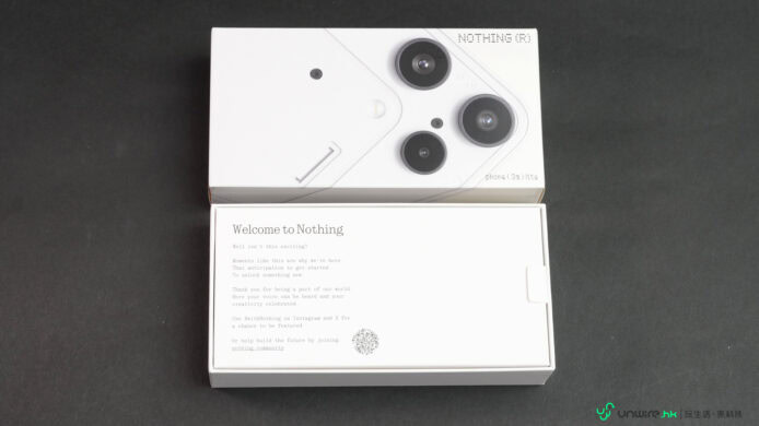 ▲一打開,一如以往會見到 Nothing 的歡迎信印在白色紙盒上。