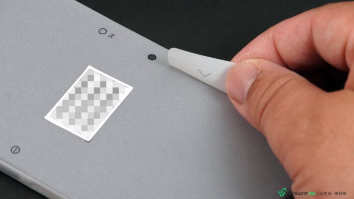▲機身中框採用鋁合金電池框架強化結構,而且採用平整式圓角方磚設計。