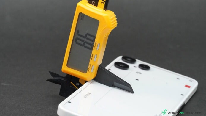 ▲機身不算厚,最薄位置以電子尺量度只有 8.6mm,最厚的相機位置也只是 10.8mm 厚度。