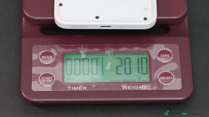 ▲再以電子磅量度機身重量,也只是 201g,不算重身。