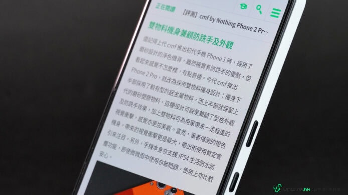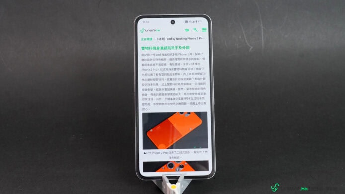 雖然 Glyph 燈效有點令人失望,但其他部分 Phone (3a) Lite 的表現卻有一定驚喜。首先是它的熒幕,Phone (3a) Lite 內建了 6.77 吋大尺寸熒幕,不但解析度達到 2392 x 1080 FHD+,更新率亦可高達 120Hz,而且更是 AMOLED 材質。除了硬件配置不俗外,用來瀏覽內容時筆者亦覺得十分理想,文字清晰銳利,熒幕亦因為支援 10 -bit 色深,可呈現達 10.7 億種色彩,令色彩鮮明而不失自然感。而且在戶外使用熒幕亮度可達到 1300 尼特,欣賞 HDR 影片時峰值亮度更可高達 3000 尼特,無論在任何地方瀏覽內容,都不會擔心亮度不足而影響瀏覽體驗。