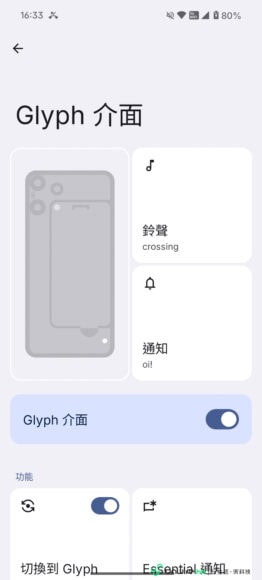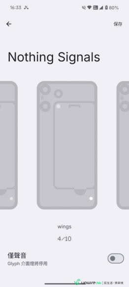 ▲在鈴聲中,除了有獨特的 Nothing 鈴聲外,亦可見到不同鈴聲下的 Glyph 燈效效果,不過閃燈頻密程度就不能自行設定。