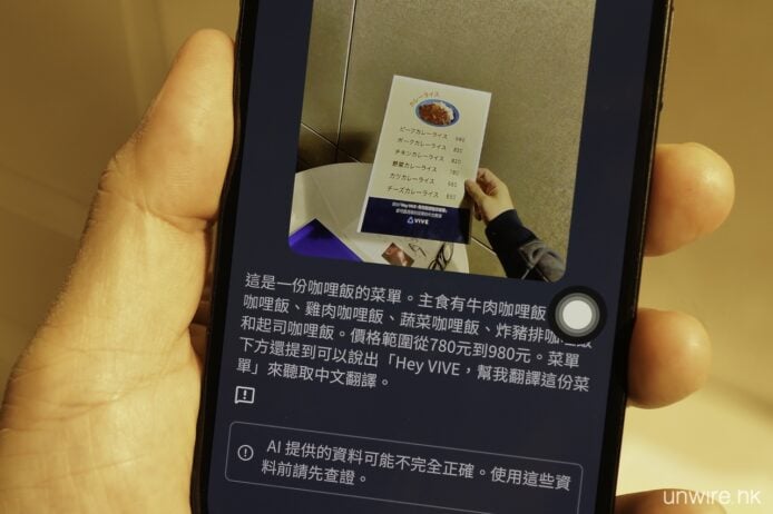 ▲當你看到一張外語的菜單,例如圖中的日語菜單,叫一聲就可讓 HTC VIVE AI 以中文介紹菜單內容