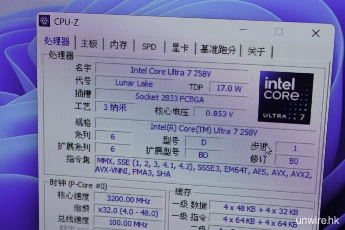 ▲電腦已內置有 3nm 製程的 Intel Core Ultra 7 258V 處理器