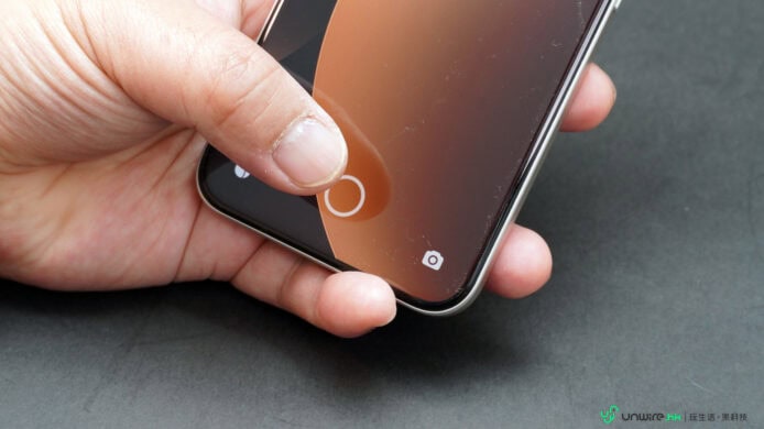 ▲不過今代的熒幕下指紋辨識器仍是設計於較近底部位置,每次按壓解鎖手機時都要「屈住」手腕才可解到鎖,不算舒服。