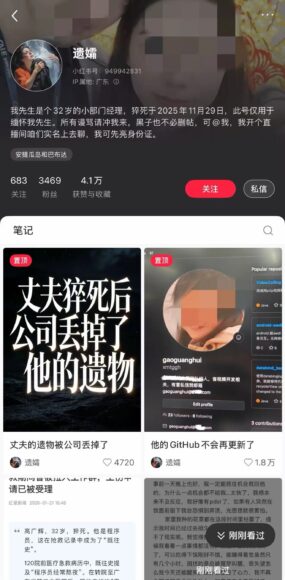 ▲妻子發文指其丈夫公司在他死後馬上掉棄了他的遺物