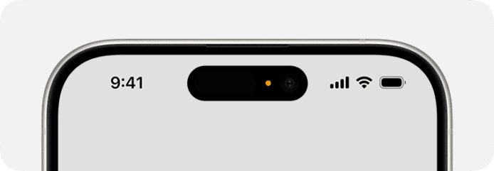 當應用程式使用 iPhone 咪高峰或相機時,畫面會顯示錄製指示燈。運用裝置咪高峰時,畫面顯示橙色點;運用裝置相機或同時運用相機與咪高峰時,畫面則顯示綠色點。指示燈讓用戶得知應用程式正在使用哪些錄製工具。