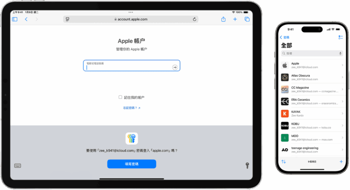 專門收集及管理密碼的「密碼」應用程式,讓用戶集中一處輕鬆安全存取帳戶密碼和通行密鑰。此應用程式亦會於發現常見密碼弱點時通知用戶,例如容易猜中的密碼,或者已知資料外洩中出現的密碼。
