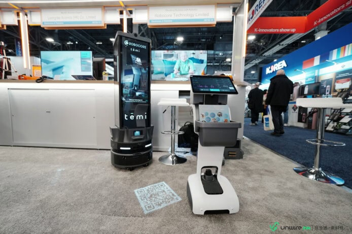 今年的 CES,Robocore 展出了全新設計的機械人 Temi,它是一款內建 16 種不同感應器(包括 LiDAR、多個鏡頭等)的機械人,而且是完全開源及模組化,他們表示可按企業需求為 Temi 加入不同設備,例如:不同的醫療量度體徵裝置,包括血含氧計、血壓計、超聲波探頭及視像會診功能等,再配合位於機械上的熒幕及鏡頭,醫生即使不在病人身旁,也可以透過遙距取得病人不同的體徵數據以準確斷症,不但可以大幅減低醫療成本,亦可縮減病人輪候醫生診症的時間及交通成本。更有趣的是,透過 Temi 機械人上的鏡頭,系統更可進行制服辨識並鎖定,換言之機械人可以鎖定跟著指定制服的職員(例如:醫院或診所的醫生、護士;護理中心的護理員等)在診所或護理中心內行走,令職員「巡房」時更加方便。