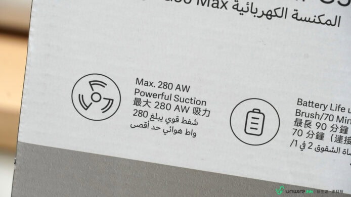 ▲G30 Max 在吸力上,相比上代最強只有 180AW,今代在強力模式下雖然仍有 25,000Pa,但就加強至 280AW,這是因為今代採用了全新的高速無刷摩打,官方表示相比上代吸力提升了 51%。