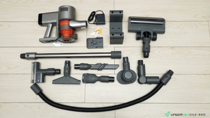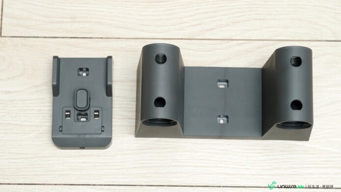 ▲包裝盒內設有兩個牆架,左方是用於收藏無線吸塵器及為之充電的架,而右方的就是收藏不同刷頭的掛架。