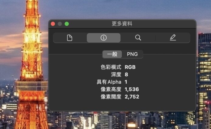 ▲以這張東京鐵塔的城市景觀圖片為例,在電腦檢查它的大小,可發現其解像度達到 2752 x 1536