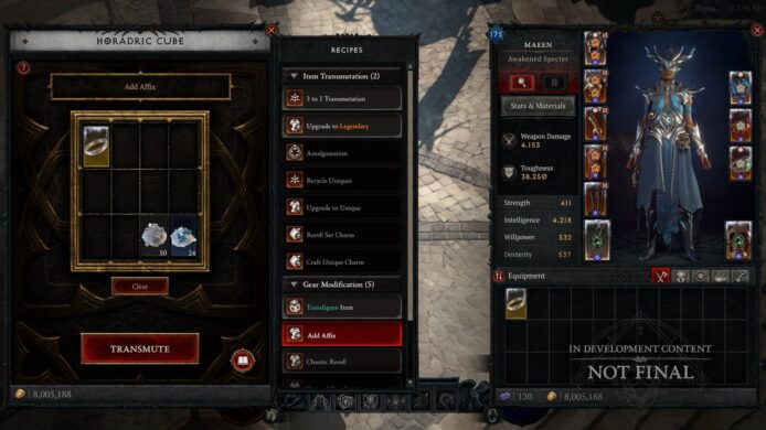 最受期待莫過於赫拉迪姆方塊回歸。系統設計總監 Colin Finer 詳細解釋方塊在《暗黑破壞神 IV》定位,主要聚焦物品製作、合成與修改。如果玩家打到三個相同獨特物品但屬性不滿意可以放入方塊重新鍛造。普通物品也能透過方塊升級為獨特物品。藍色裝備可先骰出遠古屬性再升級為傳奇。Colin Finer 認為方塊會令人覺得地上戰利品更有潛力。地上每一件裝備都有機會成為神裝。