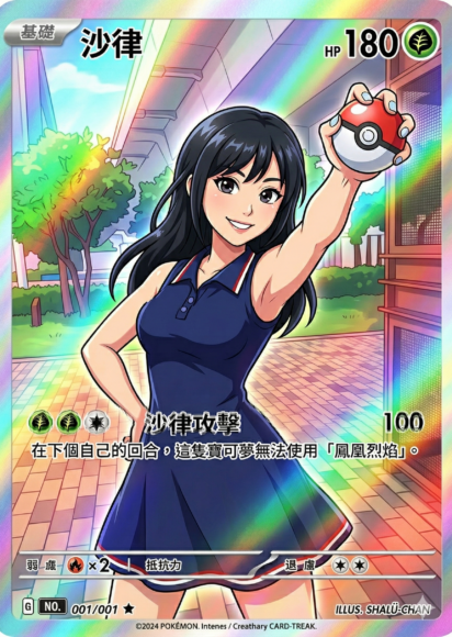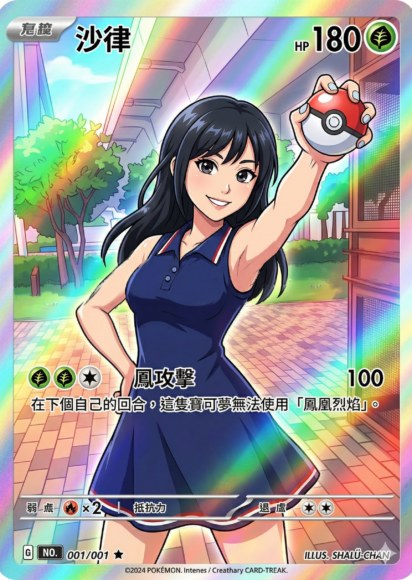 步驟三:最後便是輸入指令,大家可以直接複製以下句式:「請將相片中人物轉換為二次元集換式卡牌風格訓練家卡,人物需以色彩鮮豔賽璐璐動畫風格呈現,手持精靈球並展現充滿動感姿勢,卡牌需具備完整 TCG 佈局,包括頂部卡片名稱(名稱為(你的名字)、HP、屬性符號、招式名稱及卡號,整張卡片需呈現彩虹全息閃卡(Holographic Rainbow Foil)視覺效果,輸出的文字要是中文,而標準卡牌尺寸為 63 乘 88 毫米」。當然,你也可以根據自己喜好,再在HP或屬性符號等項目調整。